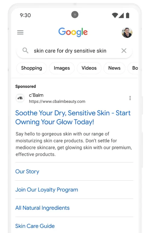 Los Activos Creados Automáticamente (ACA), que utilizan contenido de landing pages y anuncios, pronto se potenciarán con IA generativa. Esto permitirá crear y adaptar anuncios de búsqueda de forma más efectiva. Se basará en el contexto de cada consulta. Por ejemplo, para «cuidado de la piel seca y sensible», la IA podría generar un título como «Suaviza tu piel seca y sensible». Esto mejora la relevancia manteniendo la fidelidad a la marca.