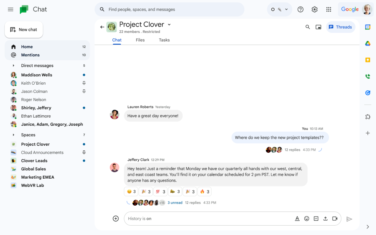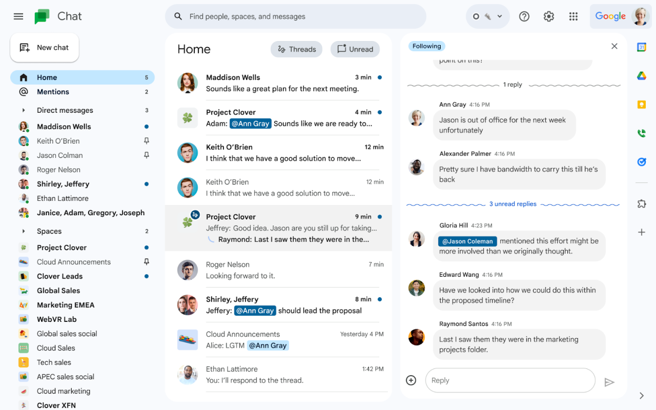 Google Chat continuará introduciendo nuevas funciones para mejorar la experiencia de hilos en línea en 2024. Esto incluye un panel de hilos redimensionable para una mejor visualización. También se agregará un acceso directo a «Inicio», donde los usuarios podrán gestionar y ponerse al día con los mensajes de los hilos que siguen. Finalmente, los participantes del hilo mostrarán avatares para proporcionar contexto visual y ayudar a determinar la relevancia de una conversación.